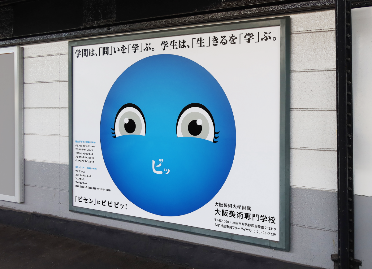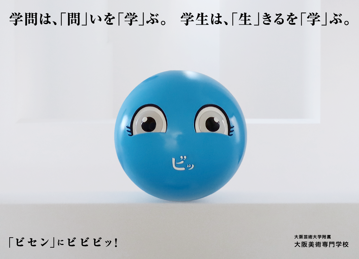 2021年より大阪芸術大学附属 大阪美術専門学校、通称「ビセン」の校長を務めることになりました。この役割を引き受けたとき、私は三つの立場を生きることになります。デザイン事務所の所長として、大学教授として、そして、専門学校の校長として。そのすべてを引き受けられるのか、自分自身に問いを投げかけました。新しいプロジェクトに向き合うとき、私はいつも、理念から考えます。どんな場所でありたいのか。何を大切にしたいのか。校長になるということも、ひとつのデザインだと考えました。その思考の中で、二つの言葉が浮かびました。学問は、「問」いを「学」ぶこと。学生は、「生」きるを「学」ぶこと。学ぶとは、答えを覚えることではありません。問いを持ち続ける姿勢を育てることです。生きるとは、正解をなぞることではなく、自分の感覚を手がかりに進むことです。この二つが重なる場所に、学校は存在するのだと思いました。そこから、「ビセンにビビビ!」という言葉が生まれました。心が動き、思考が始まる瞬間に、人は思わず声を発します。学びは、その小さな震えから始まります。やがて、校長になれるかという不安は、どんな学校を育てたいのかという問いへと変わりました。構想は形を持ち、自然とビジュアルが立ち上がってきました。学校とは、人を評価する場所ではなく、存在を肯定する場所であってほしい。「あったらいいな、こんな学校」「この学校に、いてよかった」その実感が、学びを支え、生き方を支える。私は今、その思想を、ビセンという場で実装しています。