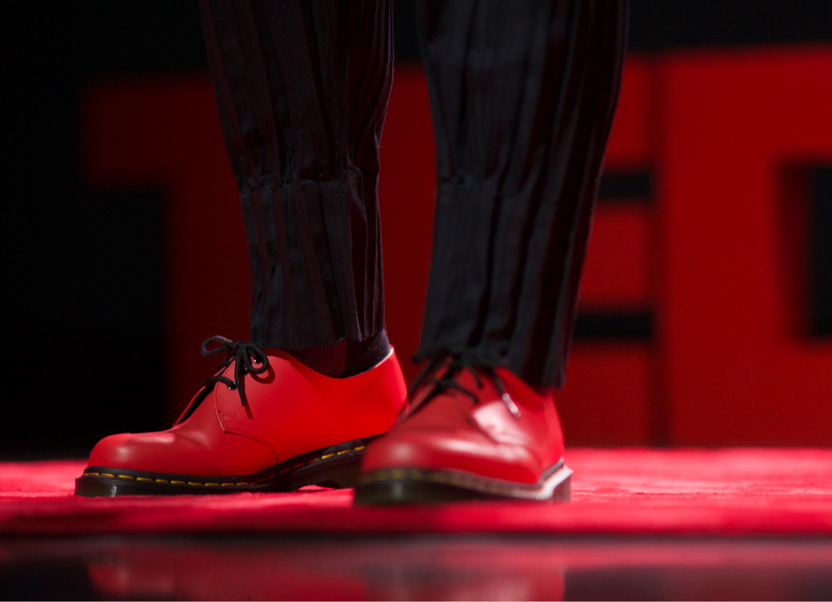 「TED Conference」をご存知でしょうか。アメリカで始まり、世界へと広がったこの講演会は、Technology・Entertainment・Designの頭文字からTEDと呼ばれます。歴史を変える発見や、社会を動かす思想を持つ人々が登壇し、思想は時間と空間を超えて広がってきました。TEDの精神は常に、『ideas worth spreading(広める価値のあるアイデア)』にあります。TEDxはその理念を受け継ぐ場です。今回、TEDx Nanbaでスピーチの機会をいただきました。APPLEの授業を実際に受けた卒業生が推薦してくれたことがきっかけです。スピーチに至るまでには、原稿の精査、模擬講演、本番リハーサルなど、徹底した準備がありました。時間と空間の制約の中で、言葉の一つひとつが意味を持ち、思想が形になることを実感しました。TEDxの場で感じたのは、理念を伝えることの重さであり、同時に喜びです。講演は単なる発表ではなく、思想を行動に変え、聴く人と語る人が共に問いを深める時間です。カメラは様々な角度からその瞬間を捉え、僕の場合、赤い靴が印象的だったようで靴のアップが複数届きました。表面的な記録に過ぎないように見えますが、実は理念や意図、思考の痕跡までも映し出すのです。TEDxでの経験は、教育やデザインの本質にも通じます。学びとは、既存の知識を伝えることではなく、問いを生み出し、次の思考を促す行為です。理念を貫くとは、答えを示すことではなく、問いを提示し、対話の可能性を開くことです。TEDxのステージで語る一言一言は、未来の思考の中で静かに芽吹き、やがて新しい知の森を形作るのだと感じました。お時間があるときに、YouTubeで講演の様子をご覧ください。TEDxの舞台は、言葉と思考が世界へ広がる瞬間の証でもあります。