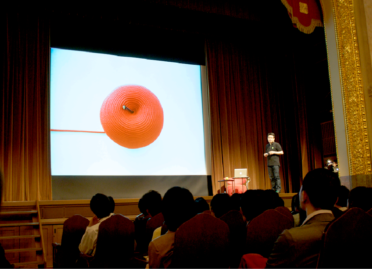 大阪芸術大学が主催するOSAKA DESIGN FORUM は、学生たちが主体となり運営するハイパープロジェクトです。コースや学年を超えて行われるものでデザイン学科の活動の中で最も大きなプロジェクトです。会場は大阪の中之島にある大阪市中央公会堂で開催され、毎回多彩なデザイナーが講演を繰り広げます。2012年のこの講演では、友人でもあるデザイナーの佐藤卓さんと、海外のデザイナーをお迎えすることが予定されていたのですが、海外のデザイナーが当日の2週間ほど前にキャンセルとなり、当時の学科長でプロダクトデザイナーの喜多俊之さんに「このタイトな日程で対応してくれるのは三木さんしかいない」とに懇願され、「えぇ〜」と言いつつ、急遽僕が講演をすることになりました。僕が、大学教授に招聘され授業を開始したのが4月ですが、5月20日には講演するというタイトなスケジュールです。今まで、国内外で講演をたくさんしてきましたが、大学の教員としての講演をするとなると、話す内容は、やはり大学での研究成果になるのではないかと思いつつも、実績がたった1ヶ月半しかありません。