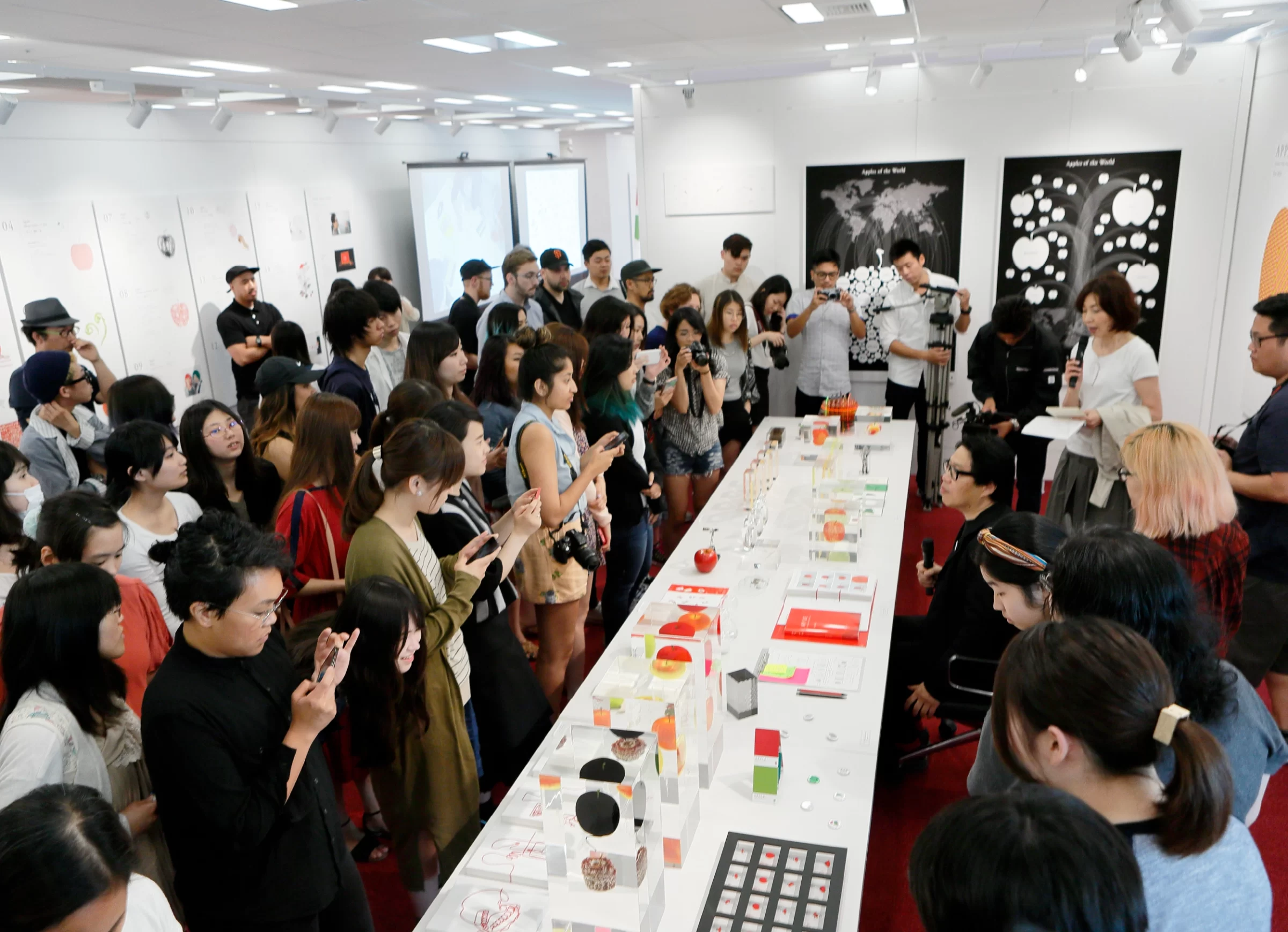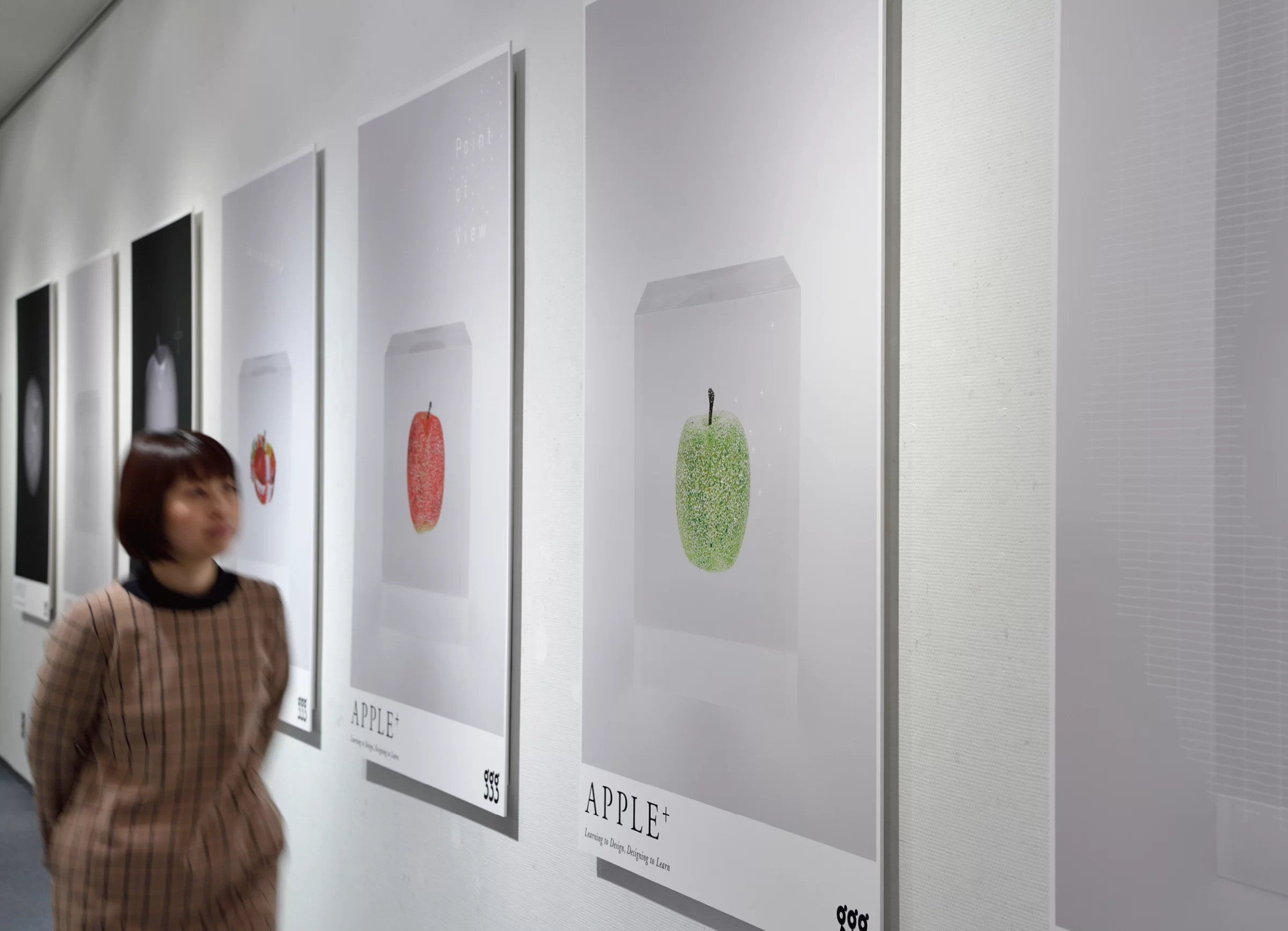 1964年東京オリンピックの記憶は鮮明に残っている。小学4年生の時だ。日の丸と金の五輪のエンブレム、陸上と水泳のポスター。それらが三面に配置された旧東海銀行の三角柱の貯金箱が僕の机にずっとあった。しかし、当時は亀倉雄策の名を知る由もなかった。その後、デザインを志しその存在を知るのだが、初めて本人に出会った日を忘れることはない。1994年、クリエイションギャラリーG8での僕の個展開催日だった。当時、G8のあるリクルートビルの2階に亀倉デザイン研究室があり挨拶に出かけた。丁度、東京国際フォーラムのシンボルマーク指名コンペに参加していた僕は、発表を首を長くして待っていた。開口一番「君の東京国際フォーラムのシンボルマークは最終選考で選ばれなかった。シンボルは難しいな」。僕にとっての「デザインの神」のような存在からの言葉だ。「君のシンボルは、君が展開することを目論んでいる。シンボルは打たれ強くなければならない。特に公共のシンボルは難しい。誰が展開しようが、少々斜めに配置をされてもビクともしない強さがいる。何より理念が明快に表現されている。それがシンボルなんだ」。この言葉がいまだ脳裏から離れない。あれからずいぶんの年月が経った。まさか、亀倉雄策賞の知らせが僕に届くとは夢にも思わなかった。今回の受賞は「APPLE+」の展覧会の告知ポスターが対象だが、その背景には「APPLE」というデザイン教育プログラムがある。これは、誰もが知っている「りんご」を通してデザインの楽しさや奥深さに気づいてもらうという構造だ。身体性を生かした観察手法や、自然界に潜む色の抽出、また、不自由さの中で見つけ出す物の真意や、偶然の幸運に出会う発想法など、ユニークな実習を通して『気づき』に気づき、最終的にはそれらすべてのプロセスが記録された教科書へと仕上がる。このように社会課題の一つである「教育」をテーマにしたデザインに評価をいただきとても嬉しく思う。このプロジェクトでは、ポスターにおける錯視を心理学者で立命館大学の北岡明佳教授に監修をいただき、その他、多くの専門家に協力を得た。ポスター、空間、インタラクティブ、映像、音楽、立体造形、書籍などあらゆるメディアを駆使して「デザインとは何か」を問い続けた。そして、その問いに真剣に悩み答えを模索した学生達。ここにみんなの力が結集してこの度の受賞へと繋がったと思う。多くのみなさんにこの場を借りて感謝したい。
