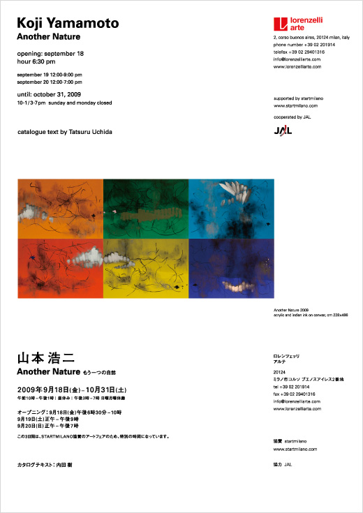 思わず「えぇ!」という声が飛び出すほど驚きました。本人の携帯電話に連絡するも留守電になっていて繋がりません。あたりまえですよね。取り急ぎお見舞いの伝言をしておいたら、奥さまから連絡があり状況がつかめ、まずは、ひと安心。ただ、イタリアの展覧会の後半に合わせて渡伊するのは無理かも。日本から展覧会を見に行く友人もかなりいるとか。きっと、ベッドの上で残念がっていることと思います。その森永さんも自分の公演が控えていて昨日の最終で東京に戻らねばならないとか…。「ふぅー」。「いろいろあるよな」と、ため息をつきながらの連休です。「頑張れ、山本浩二」。山本浩二のミラノの展覧会(Another Nature もう一つの自然)10月31日まで。