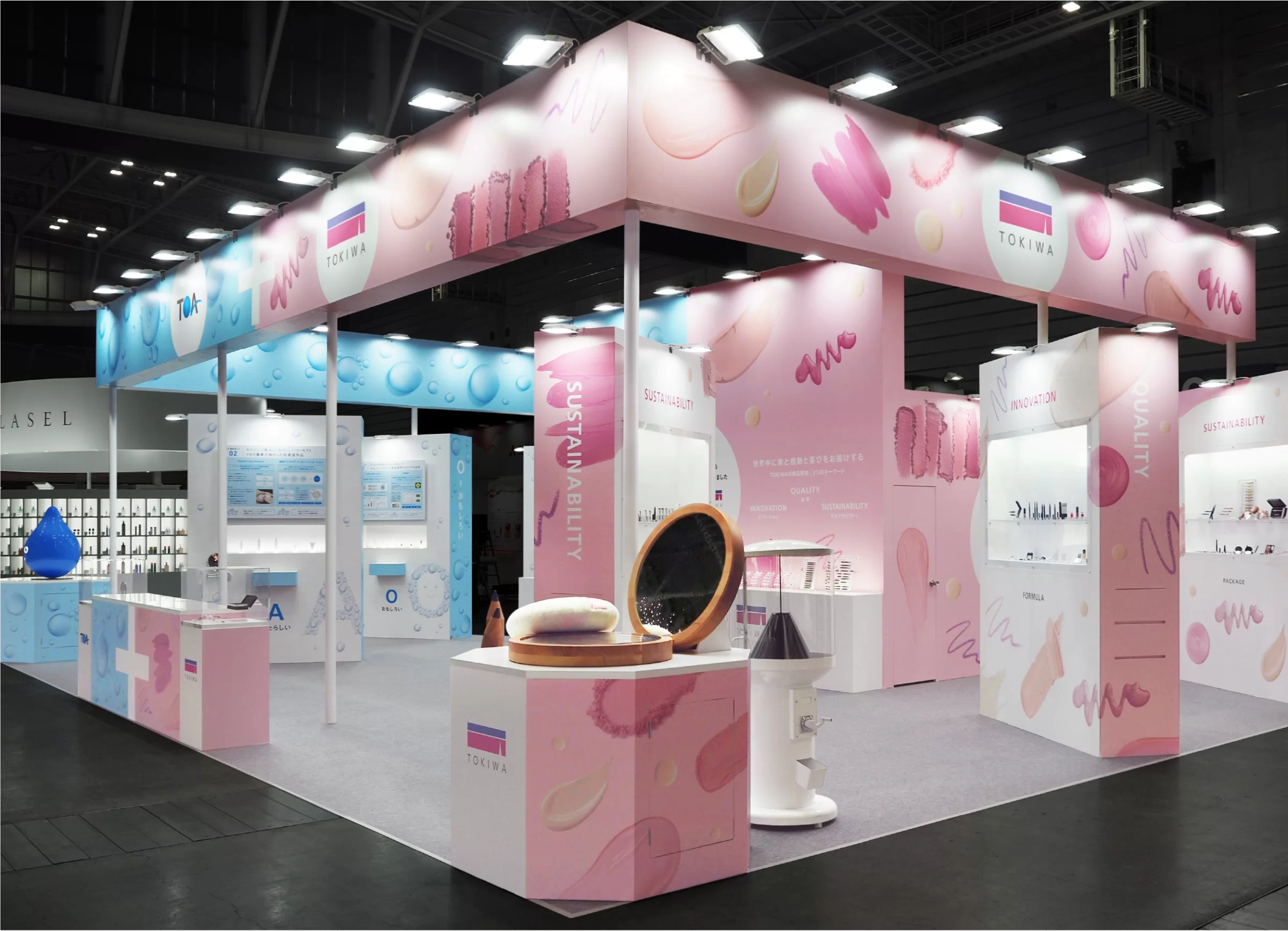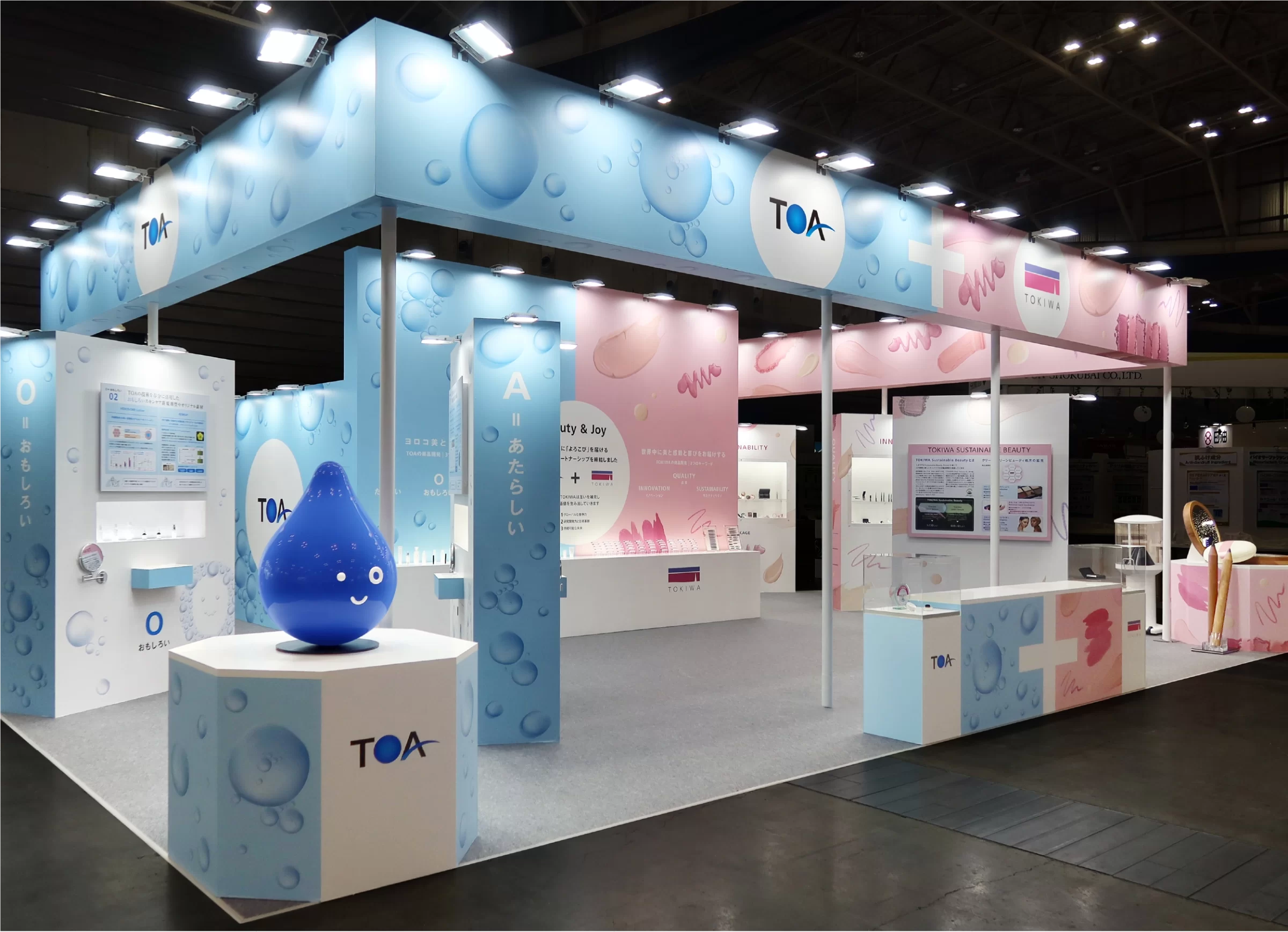 化粧品のODM/OEMのTOA株式会社(旧:日本コルマー)さまと、コスメティックの株式会社TOKIWAさまがパートナーシップを締結後、初の共同出展「CITE JAPAN 2025」の展示ブースなどのお手伝いをいたしました。TOAとTOKIWAがパートナーになったことをブース全体で大きくメッセージしながら、両社の特徴を明確にアプローチすることを心がけました。