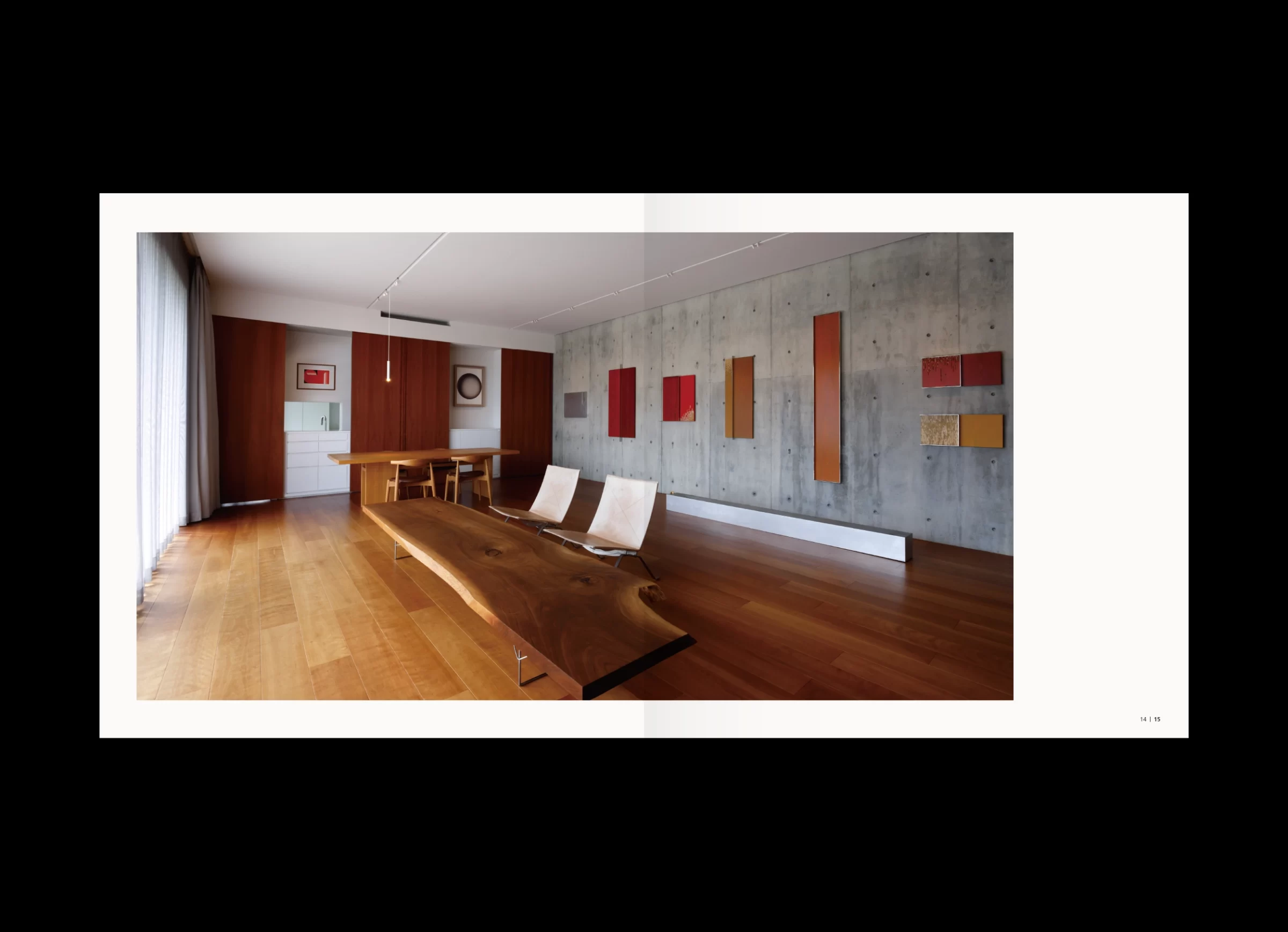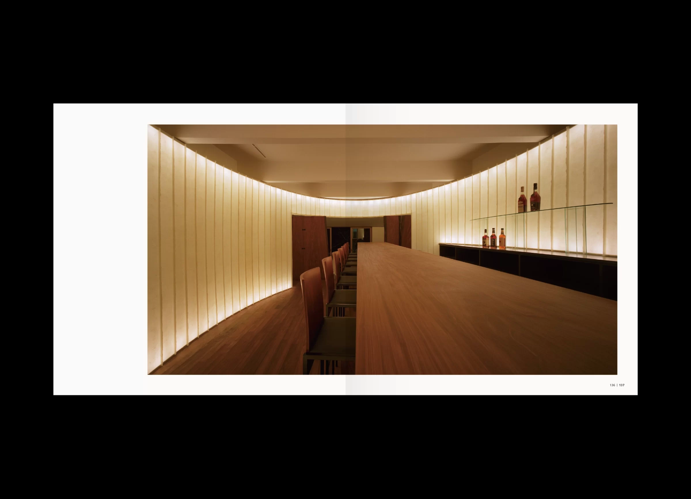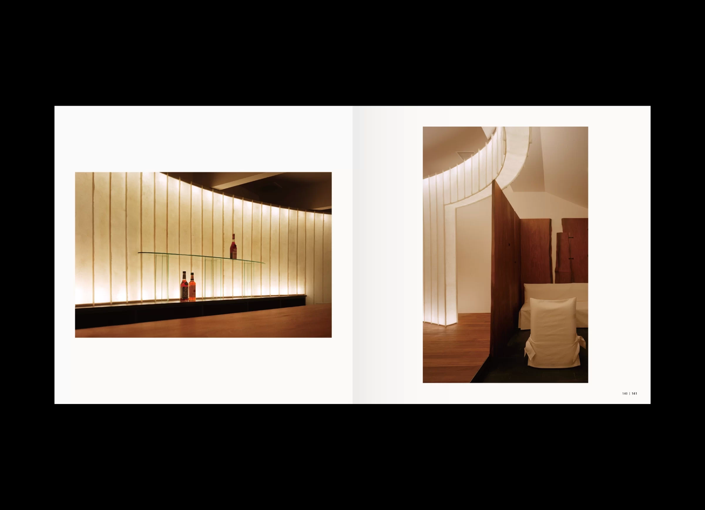 「水谷光宏作品集」は、近年の作品から初期作まで、およそ40年にわたる創作活動の中から選び抜かれた内容で構成されています。大阪芸術大学を卒業後、現代美術作家・泉茂氏に師事した水谷さんは、環境アートの仕事に携わりながら、独学で現在の空間デザイナーとしての立ち位置を築いてこられました。その出発点はあくまでアートにあり、やがてインテリア、建築へと領域を横断しながら、空間デザインという実践へと展開していきます。本書の巻頭で水谷さんは、「体験的価値である空気感を、自らの肌で感じ取ること」を大切にしていると語っています。その言葉どおり、素材への強いこだわりや、職人との密な協業は、水谷さんの活動を特徴づける重要な要素です。各プロジェクトにおいて自ら素材を探し、選び、時には収集のために各地を飛び回りながら、工房や職人と頻繁に対話を重ねていきます。そこでは計画通りに進むだけでなく、偶然の出会いに導かれるように、触発された素材からイメージを組み立て直すことも少なくありません。実際、私が依頼したプロジェクトでは、偶然見つけた雨ざらしの鉄板に惹かれ、あえて新品の鉄板と交換し、空間に構成されたことがありました。 水谷さんの空間づくりは、素材を見極める目や職人技といった身体感覚に対して、極めて繊細に神経を巡らせながら、機能的価値と情緒的価値が重なり合う地点を探り続ける営みだと言えるでしょう。本書では「建築・インテリア・アート」という三つのコンテンツで構成されていますが、それらは明確に分断された領域ではなく、互いに滲み合いながら立ち上がっています。その重なりの中にこそ、水谷光宏という表現者が生み出す〈水谷空間〉の本質が浮かび上がってくるのです。