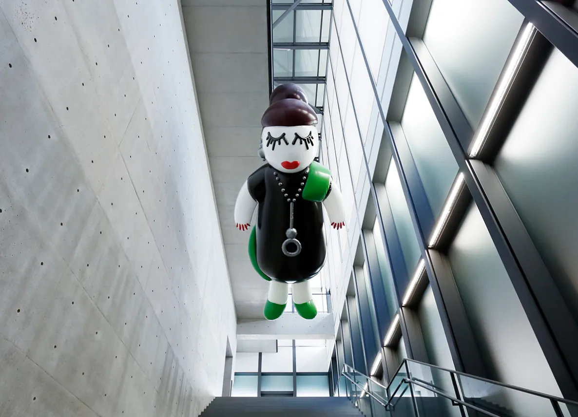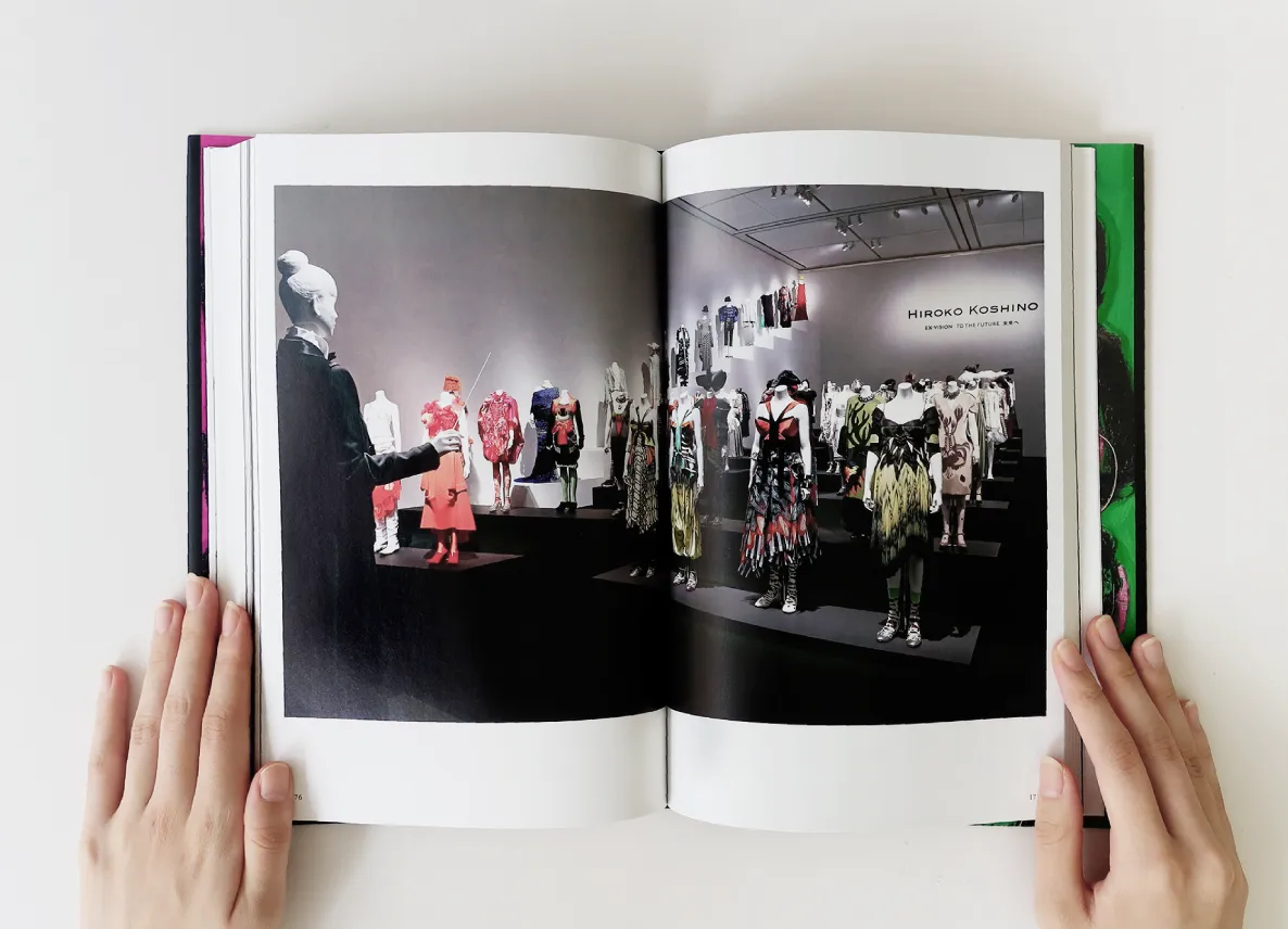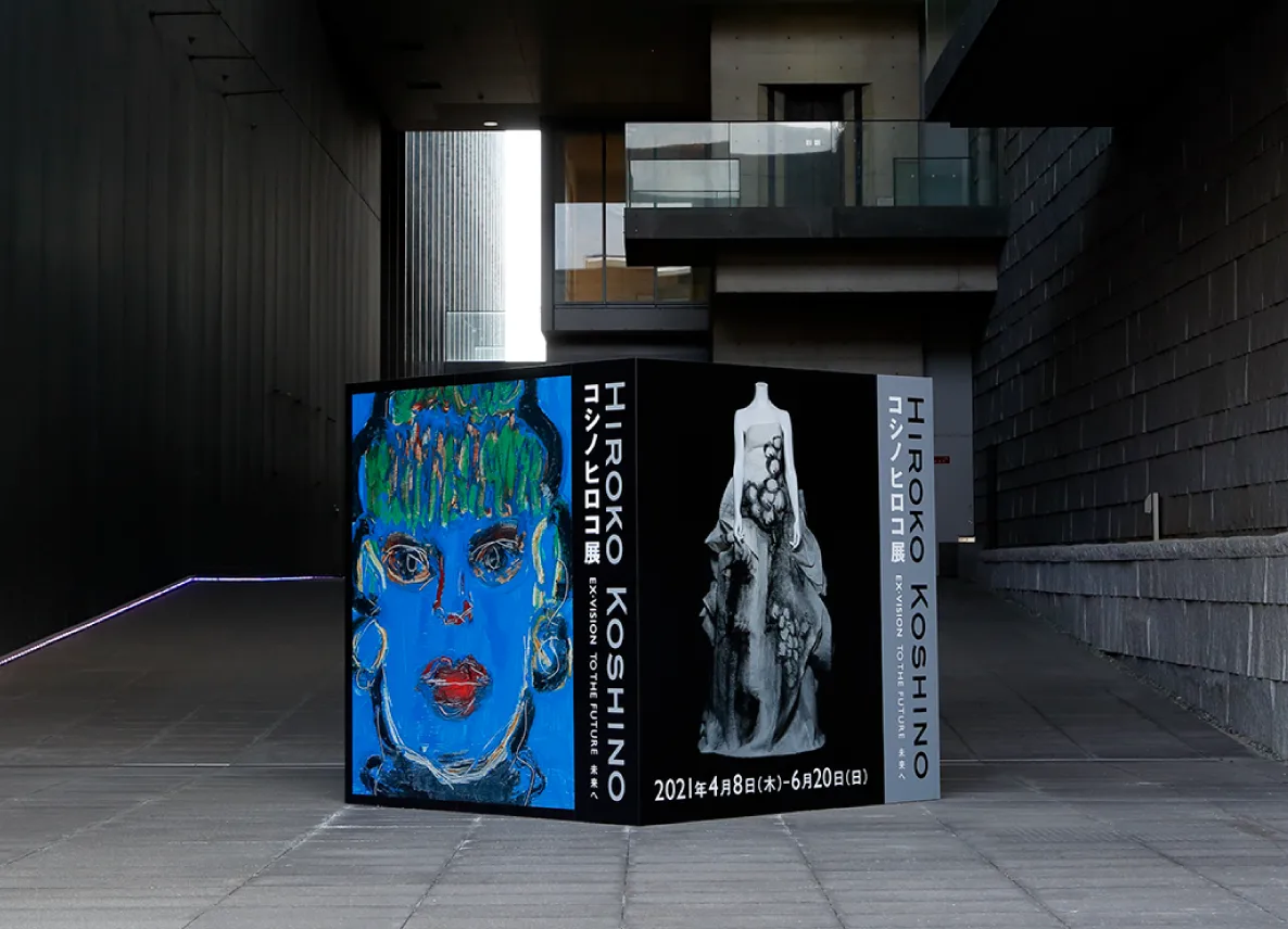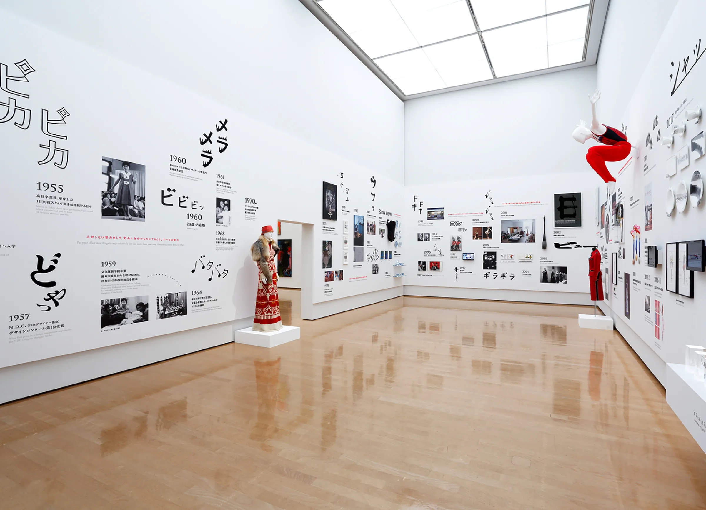 本展は、新型コロナウイルス感染症という未曾有の状況下で、兵庫県立美術館にて開催された、ファッションデザイナー・コシノヒロコの展覧会です。企画はコロナ以前から始まり、当初は傘寿を記念した書籍『HIROKO KOSHINO』に沿って、その軌跡を辿る構成を想定していました。しかし開催を1年後に控えた頃、ヒロコさんから展覧会の方向性を見直したいという連絡が入ります。世界が不安に覆われるなかで、いま必要なのは回顧ではなく、未来へ向けた光ではないか。戦時中、母に買ってもらった一箱のパステルが想像力によって未来を切り開いた原体験が、今回の決断の根にありました。「今回の不安は、戦時中に感じた恐怖以上かもしれない」。だからこそ本展は、単なるアーカイブではなく、84歳(2021年時)のコシノヒロコが未来の子どもたちへ『ときめき』を託す「TO THE FUTURE 未来へ」へと姿を変えます。展覧会は、知識を並べる場ではなく、身体で感じる場として構想されています。テーマパークを訪れた時のような高揚感。驚きや笑いが連なり、気づけば心が前を向いている。その体験こそが、本展の「VISION」です。安藤忠雄氏設計の建築空間を舞台に、会場前の大階段には5メートルを超えるヒロコちゃんバルーンを設置。その先にはヒロコさんの顔を写したマネキンが並び、一部は突然動き出します。展示全体はオノマトペによって構成され、言葉になる前の感情を呼び覚まします。ファッションとは、衣服の記録ではなく、生きる姿勢の表明である。この展覧会は、過去を保存するためのものではなく、未来へ踏み出すための想像力を取り戻す場として存在しています。