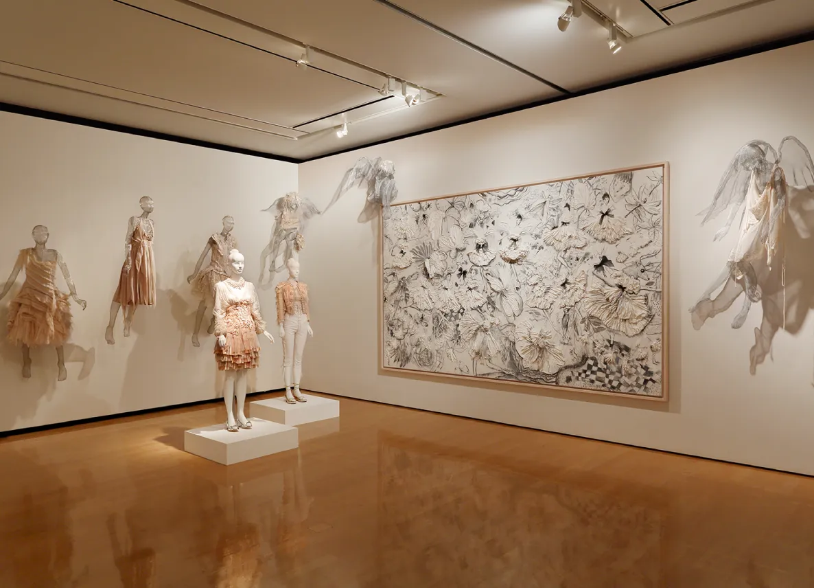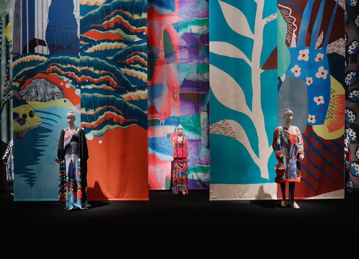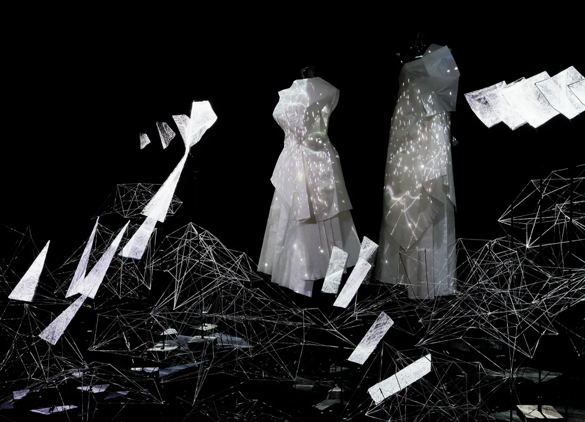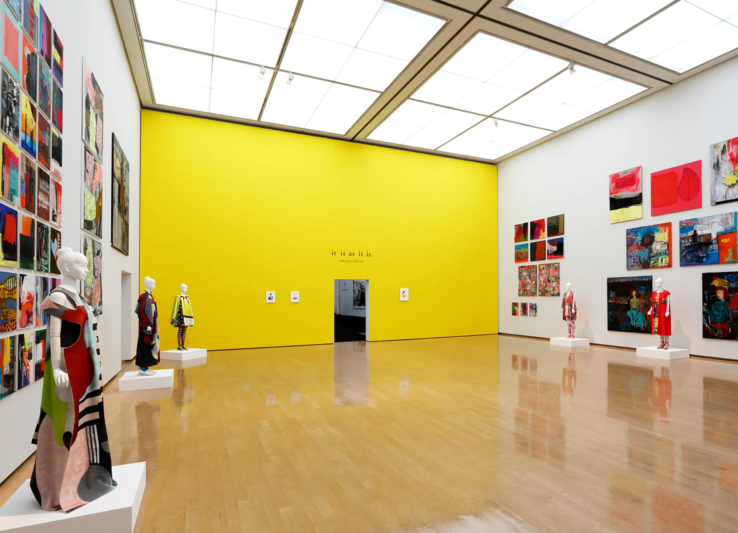 本展は、新型コロナウイルス感染症という未曾有の状況下で、兵庫県立美術館にて開催された、ファッションデザイナー・コシノヒロコの展覧会です。企画はコロナ以前から始まり、当初は傘寿を記念した書籍『HIROKO KOSHINO』に沿って、その軌跡を辿る構成を想定していました。しかし開催を1年後に控えた頃、ヒロコさんから展覧会の方向性を見直したいという連絡が入ります。世界が不安に覆われるなかで、いま必要なのは回顧ではなく、未来へ向けた光ではないか。戦時中、母に買ってもらった一箱のパステルが想像力によって未来を切り開いた原体験が、今回の決断の根にありました。「今回の不安は、戦時中に感じた恐怖以上かもしれない」。だからこそ本展は、単なるアーカイブではなく、84歳(2021年時)のコシノヒロコが未来の子どもたちへ『ときめき』を託す「TO THE FUTURE 未来へ」へと姿を変えます。展覧会は、知識を並べる場ではなく、身体で感じる場として構想されています。テーマパークを訪れた時のような高揚感。驚きや笑いが連なり、気づけば心が前を向いている。その体験こそが、本展の「VISION」です。安藤忠雄氏設計の建築空間を舞台に、会場前の大階段には5メートルを超えるヒロコちゃんバルーンを設置。その先にはヒロコさんの顔を写したマネキンが並び、一部は突然動き出します。展示全体はオノマトペによって構成され、言葉になる前の感情を呼び覚まします。ファッションとは、衣服の記録ではなく、生きる姿勢の表明である。この展覧会は、過去を保存するためのものではなく、未来へ踏み出すための想像力を取り戻す場として存在しています。