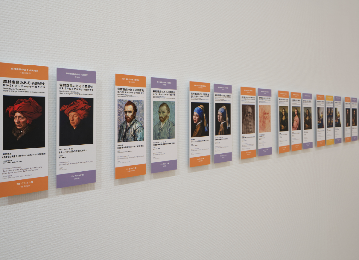 Works Exhibition 富山県美術館 Works一覧へClient別一覧へ ほんきであそぶとせかいはかわる 富山県美術館「森村泰昌のあそぶ美術史」 Concept 富山県美術館で開催された本展覧会では、美術家の森村泰昌さんをゲストキュレーターとして迎え、美術館のパーマネントコレクションを大胆に再構成しました。森村泰昌さんは、自身を名画の登場人物や映画女優、歴史的人物に置き換えるセルフポートレートを通して、「ものの見方」や「価値の変換」といったテーマを作品に反映させ、美術の枠組みを問い直す独自の表現を展開します。本展もその特徴を活かし、従来のコレクション展とは異なる視点で構成されています。会場を巡ると、絵画の裏面や普段は見えない部分が展示されていることに観覧者は驚きます。例えば、フォンタナのキャンバスを切り裂いた作品の裏面など、通常では目にすることのできない角度から作品を鑑賞できる展示です。これにより、作品の制作過程や作者の思考、作品に込められた意図を直感的に感じ取ることができます。まるで美術館の中で「発見する楽しみ」を体験するかのような構成です。展示は、遊び心あふれる6つの章に分かれており、それぞれの章で異なるテーマや視点からコレクションを楽しむことができます。タイトルの「ほんきであそぶとせかいはかわる」が示すように、観覧者は作品を通して自由に想像力を働かせ、物語や感情を自分自身で発見する体験ができます。森村泰昌さんの作品や展示からは、チャーミングな少年のような目の輝きや遊び心が感じられ、観る人の世界観を柔らかく揺さぶります。本展覧会は、美術館のコレクションをただ鑑賞するだけでなく、作品と向き合い、発見し、考える楽しみを提供する新しい体験型の展示です。森村泰昌さんのユーモアと洞察力に満ちた演出によって、観覧者は美術の世界を新しい目で見ることができます。 Credits 2020年03月07日(土)~05月10日(日) Artist: Yasumasa Morimura Curation: Kiriko Watanabe Art direction: Ken Miki Graphic Design: Ken Miki, Yoko Inuyama, Achika Uchino, Takeshi Sato Space Design: Naohiko Hino Photo: Kenji Morita
