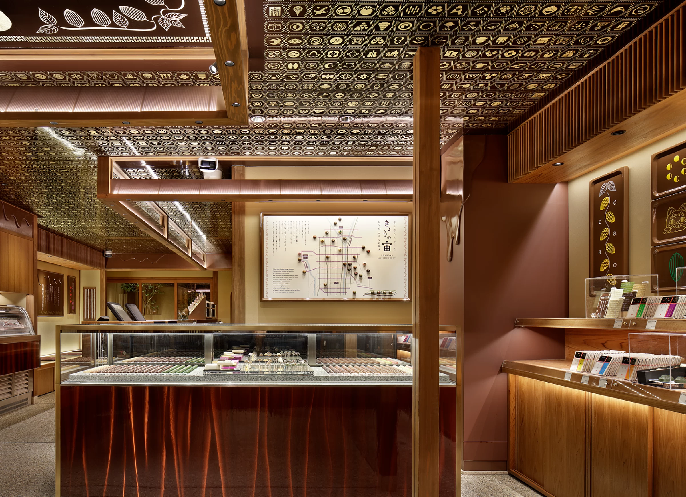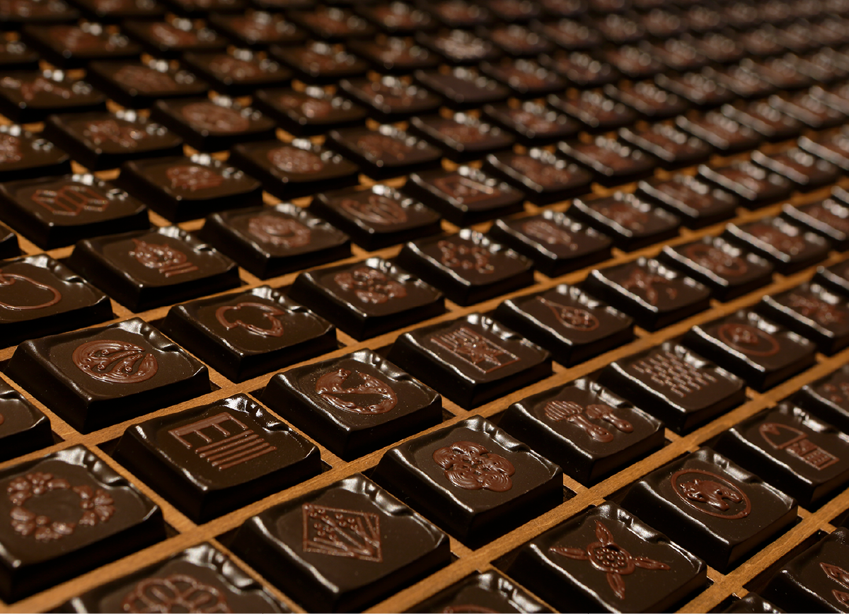 カカオは、古代マヤ文明の時代から、「神々の食べ物」としてあがめられてきました。そのカカオでつくるヨーロッパ生まれの「チョコレート」を京都流儀のお菓子に仕立てるとすれば、どんなお菓子になるだろう。自然に寄り添い、四季の祭事と共に暮らす京都には、「日々是好日」という毎日をていねいに暮らす文化があります。そして「おいしい」を五感で味わう豊かさを知っています。一年365日の全てを京都の流儀で楽しむ「加加阿のある暮らし -Everyday is a good day.」をテーマに京都祇園発のショコラトリー「加加阿365(カカオサンロクゴ)」のブランドを組み立てました。一年365日の暮らしや文化をテーマにオリジナルの紋を制作し、毎日、紋の変わるチョコレートや、四季を表現するお干菓子のようなチョコレートをご用意したり、舞妓さんのおちょぼ口でいただけるようなチャーミングなお菓子を作ったりと、京都ならではの食材と組み合わせた、グローカルなKYOTO QUALITYを意識した商品を展開していきました。結果、ここでしか味わえない「加加阿のある暮らし」のチョコレートブランドが誕生しました。