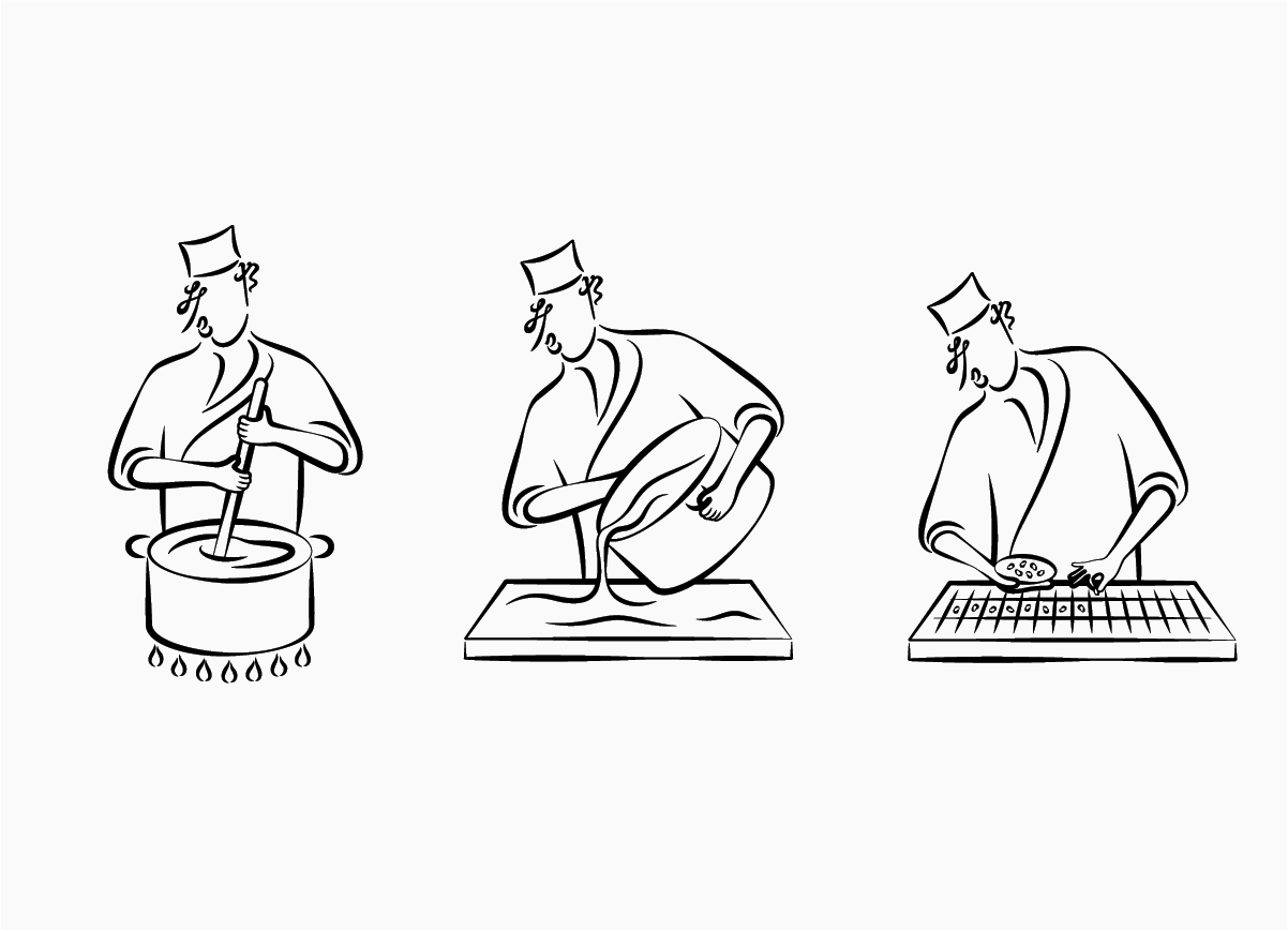 「都」は、京都の和菓子屋であり、「食べる宝石」と称される琥珀糖のOEMによって成長してきたブランドです。琥珀糖は、寒天・砂糖・水という最小限の素材から生まれる、食感も楽しい和菓子です。その透明な佇まいには、時間や光、手仕事の記憶が凝縮されています。この「都」の営みを、京丹後に140年以上続く炭平旅館が継承することになりました。江戸時代、京都の旅館で生まれたとされる琥珀糖。その文化を、長い時間を宿す旅館が受け継ぐことは、単なる事業承継ではなく、土地と記憶、もてなしの精神が静かに手渡される出来事のように感じられます。そこには、偶然を超えた必然のような文化的連なりが息づいています。ブランド再構築にあたり掲げたコンセプトは、「なつかし、あたらし」。懐かしさとは過去に戻ることではなく、記憶の奥に触れること。新しさとは断絶ではなく、解釈を更新する行為であると捉えました。シンボルデザインでは、江戸時代に生まれた「文字絵」の文化に着目しました。文字を読むものから、眺め、味わい、遊ぶものへと変換する、日本独自の知のかたちです。「ひらがな+漢字」という発想から、「み・や・こ」のひらがなと漢字の「都」の両方に見える文字を図案化し、意味と形が行き来する曖昧な輪郭を生み出しています。さらに、「へのへのもへじ」のような素朴な遊び心に倣い、「み・や・こ」のひらがなで職人の顔を描きました。そこには、名もなき手仕事への敬意と、人の気配を残したいという思いがあります。また、「琥珀糖」という言葉の「琥珀」を「王」「虎」「白」に分解し、それぞれを象形文字をベースに再構成することで、言葉そのものを味わう試みも重ねました。これらの頓知や遊びは、理解されるためではなく、気づかれ、語られていくための仕掛けです。「遊びが仕事、仕事が遊び」。伝統を固定せず、更新し続けることで、京菓子「都」は味覚を超え、言葉や記憶、文化を包み込みながら、静かに未来へと広がっていきます。ます。