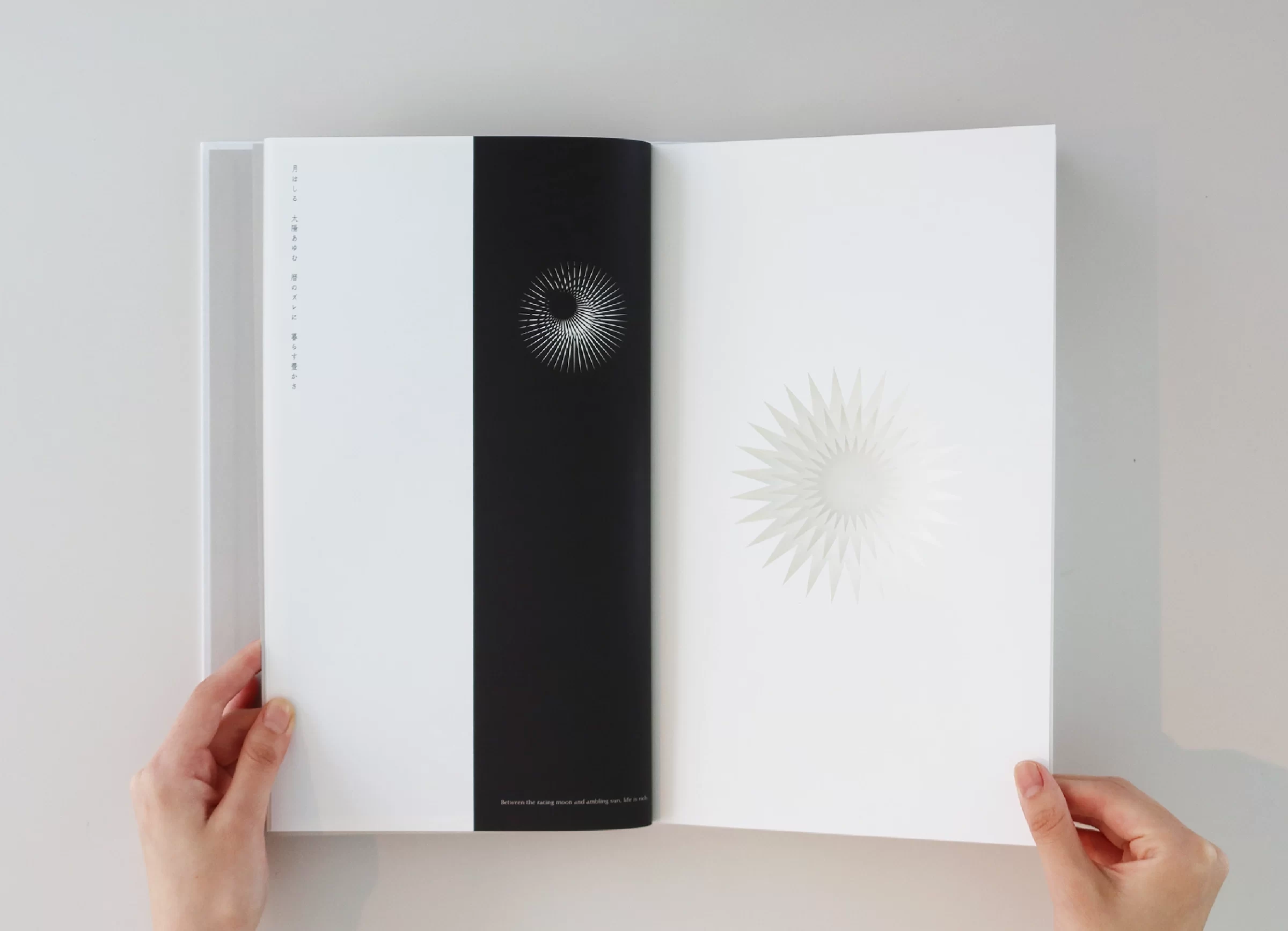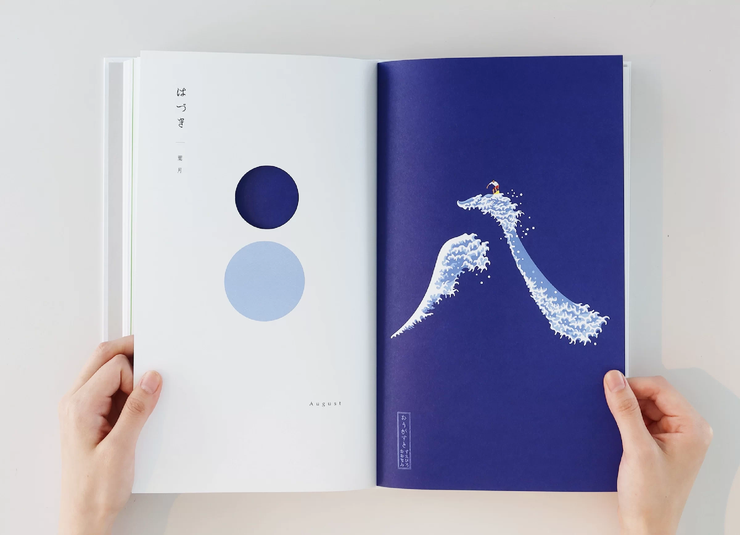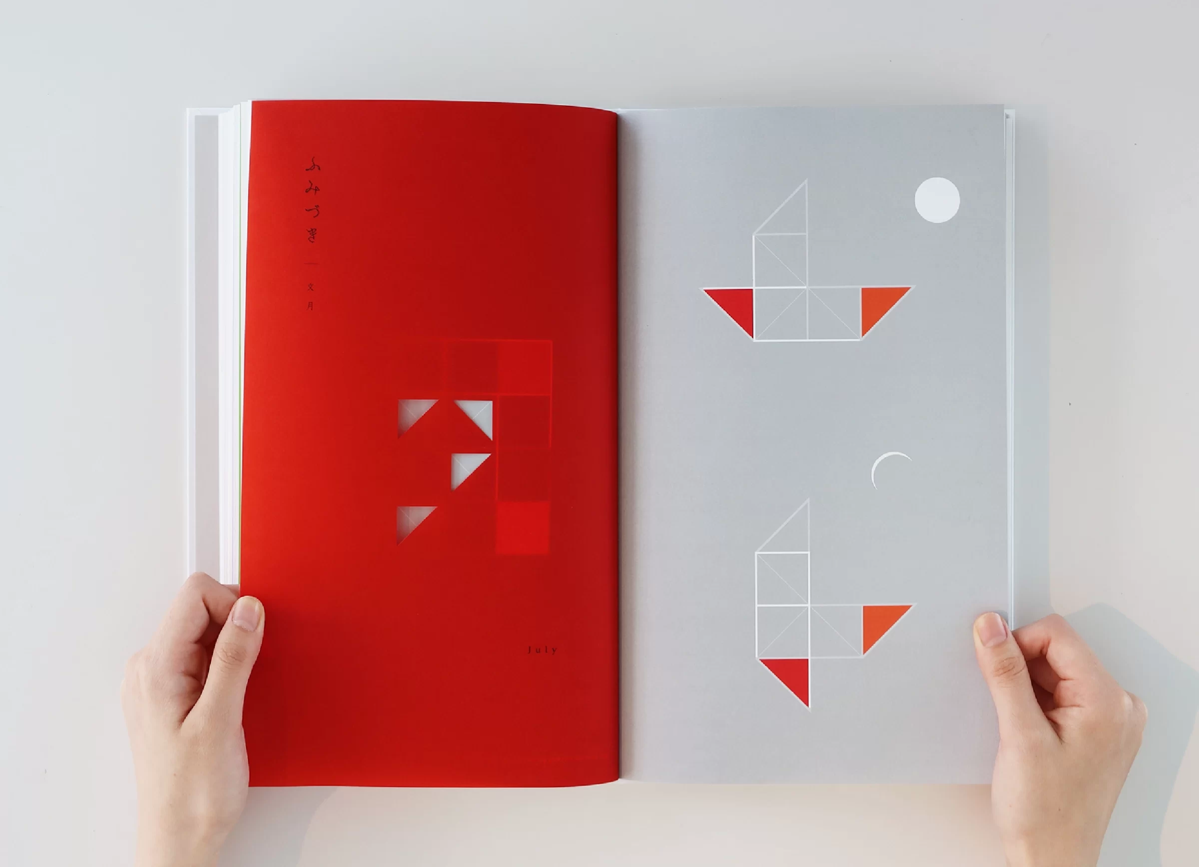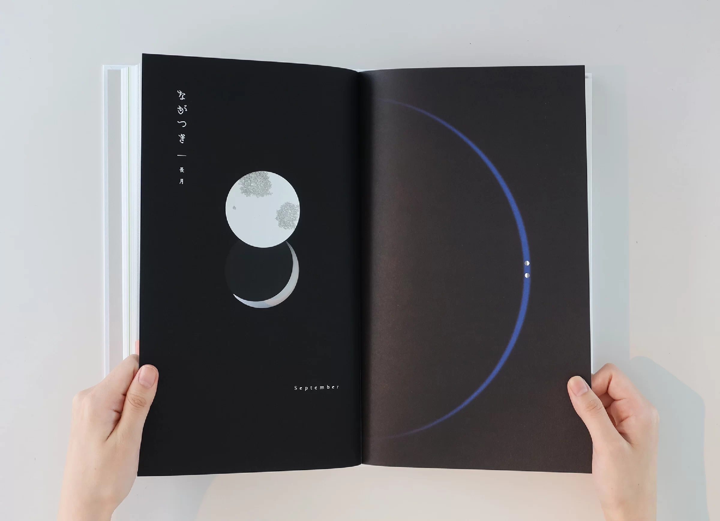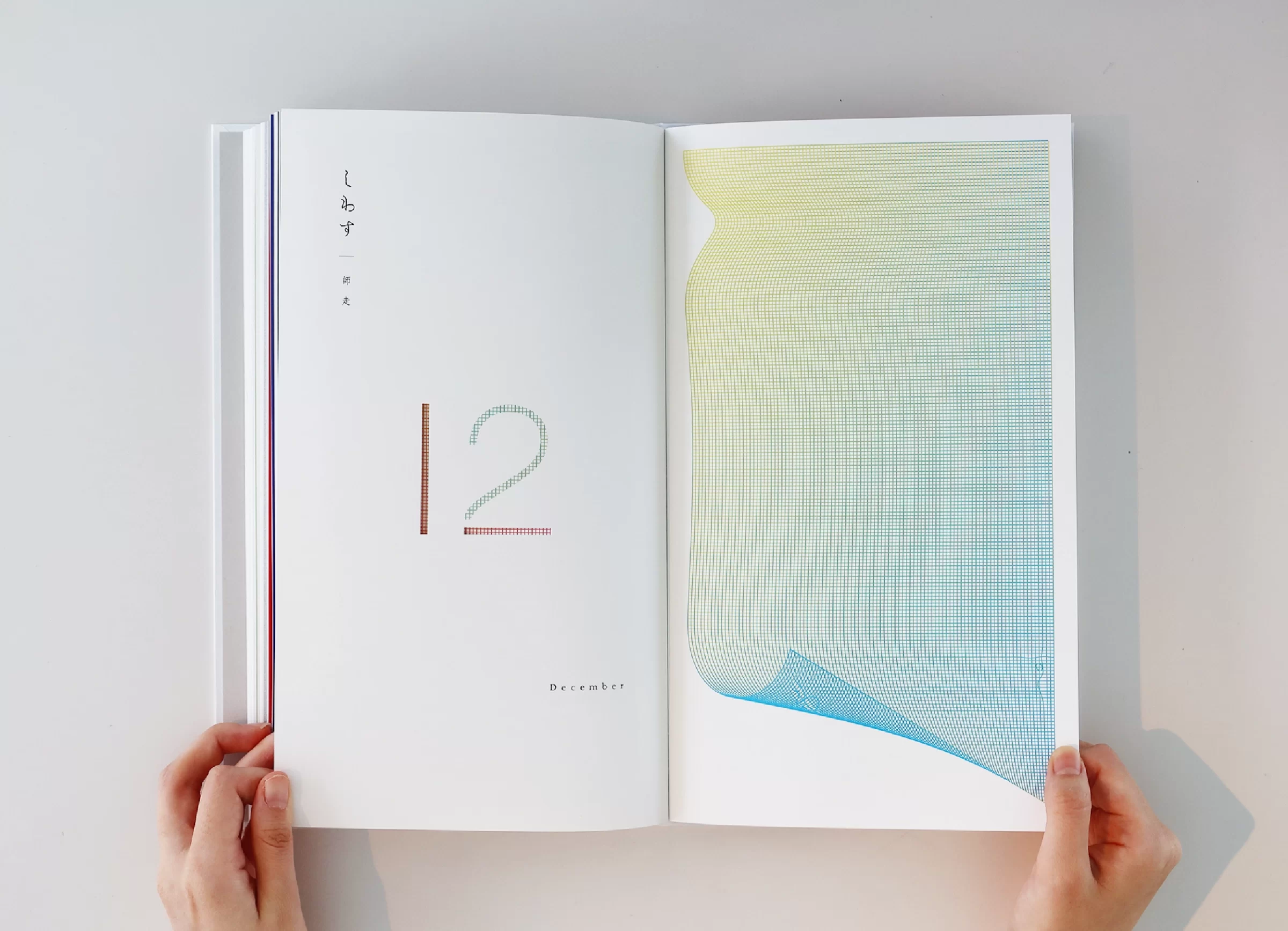 暦は「一日、二日…」と数える「日読み(かよみ)」に由来するといわれています。暦には、天体の運行や天象の予報、日付や曜日、二十四節気、七十二候、六曜、年中行事など、多くの情報が含まれています。ニュースや天気予報で「暦の上では…」という言葉を耳にすることがありますが、その表現からは、移りゆく自然のリズムに寄り添った日本の文化や風習を感じ取ることができます。暦は、いわば「暮らしのものさし」として機能してきたのです。また、暦には占星術や過去の天気情報を独自に組み立てて未来を予測する性質もあり、多面的な視座が重なることで、「暮らしの未来を想像する」浪漫が息づいてきました。2019年の竹尾デスクダイアリーは、日本の文化や風習を紡ぎながら、「毎日をていねいに暮らしていく」日本人の自然観をコンセプトに制作しました。旧暦を拠り所としたタイポグラフィで絵本のような表現を試み、月の扉の一部には、穴を開けるなど次の月へとつながる仕掛けを設け、ページをめくるたびに季節の移ろいを感じられる工夫をしています。また、扉に使用する紙はそれぞれ個性のあるものを選びました。紙の風合いや色、柄は、自然のさまざまな要素をお手本にして作られてきたのではないかと想像したからです。現在使用している紙には化学的な素材も含まれていますが、紙のルーツは植物繊維を原料としており、「植物の遺伝子」を受け継いでいます。「かみ」と「こよみ」から成る「かよみ(日読み)」──このデスクダイアリーは、ていねいに、丹精を込め、暮らしの日々を綴るための一冊です。
