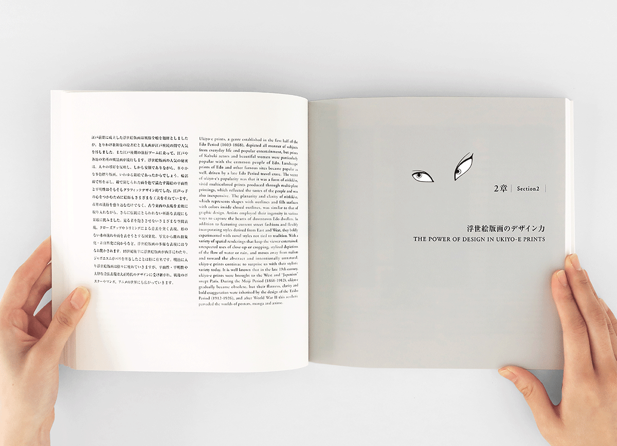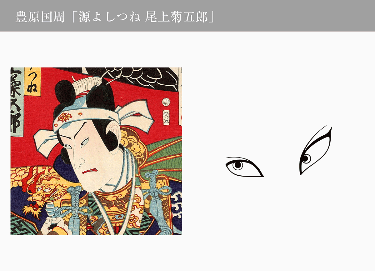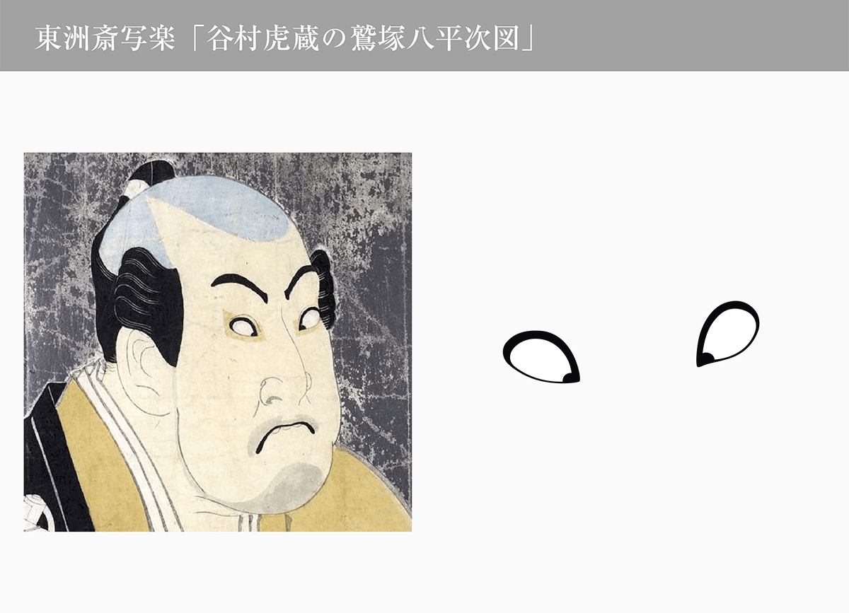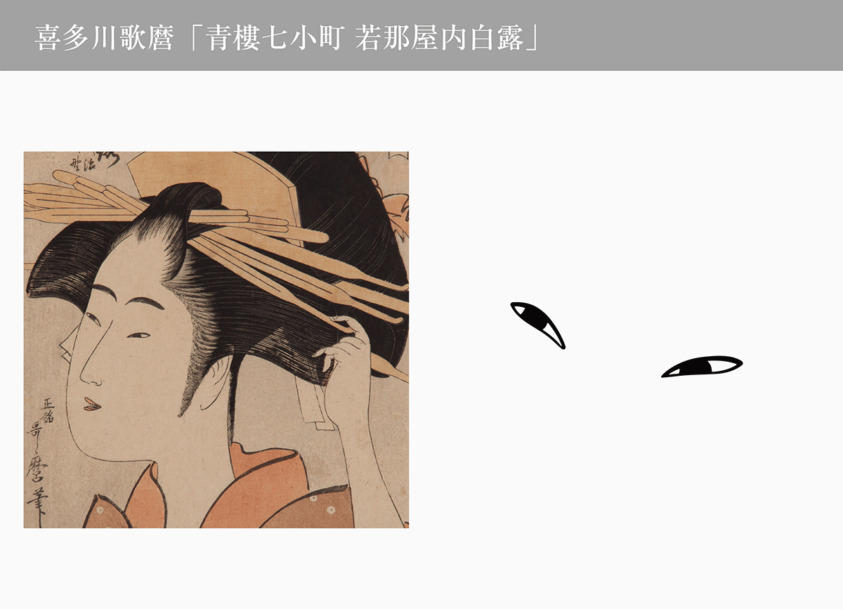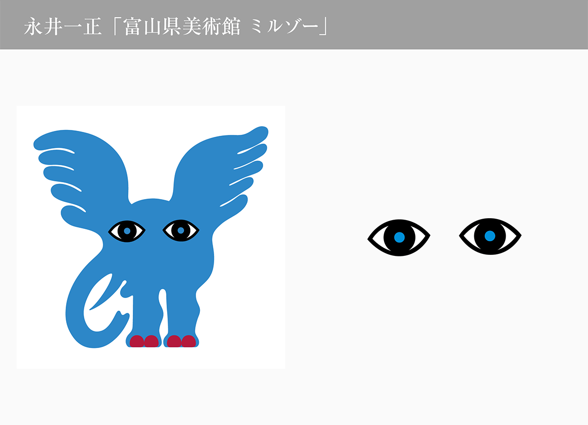 「日本の美 −琳派、浮世絵版画から現代へ−」は、日本の美術に内在する装飾性やデザイン性に着目し、琳派や浮世絵版画から現代絵画、ポスターに至るまで、多様な美のかたちを紹介する展覧会です。琳派の祖・俵屋宗達による《風神雷神図》、そして浮世絵の東洲斎写楽や喜多川歌麿の作品を眺めていると、まず目に飛び込んでくるのは「目」の存在です。ギョロ、ジロッ、シラッ、トローン。そこには驚くほど豊かな表情が宿り、視線だけで感情や物語を語りかけてきます。もし、その「目」だけを切り取って眺めてみたらどうでしょう。途端にそれらは、とてもポップで、現代的な造形として立ち上がってきます。その眼差しの連なりの中に、日本のアニメや漫画、さらには現代美術へとつながる文化の系譜が、ひそやかに息づいているようにも感じられます。長年にわたり富山県美術館のデザインを手がけてきた永井一正さんのポスターを改めて見つめると、そこに描かれた「目」にもまた、日本美術の記憶が脈々と受け継がれていることに気づかされます。時代や表現が変わっても、日本の美は、視線の中に宿り続けているのです。もし、無数の情報が流れるデジタル空間の中で、突然「目」が瞬きをしたとしたら。私たちは思わず立ち止まり、自分が何を見ているのか、問い返すことになるでしょう。このポスターは、日本の美が持ち続けてきた眼差しの力を、現代に呼び戻すための試みです。